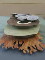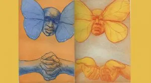 In Falling to Earth (2002), featured in the first case, Kuch offers a poignant response to the tragic collapse of the World Trade Center Towers. He incorporates angels, Jacob’s Ladder, and the mythical Icarus, who flies to close to the sun with his wax wings; “Greek mythology warns us about trying to reach too high. Tragedy is a consequence of that,” notes Kuch in a February 2002 article in Hampshire Life. Falling is a metaphor for the physical and spiritual costs of violence, but Kuch’s work is also about healing.